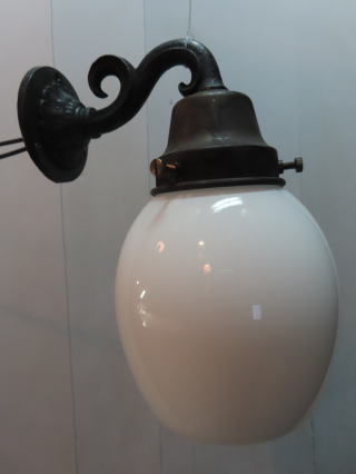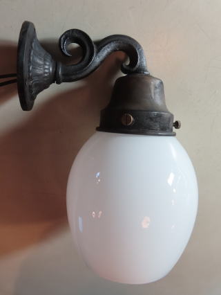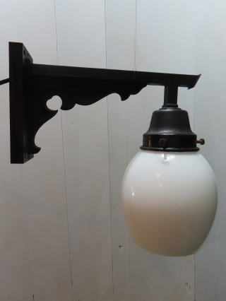 ●07090704 (丸グローブ・ブラケット) 全体の高さ:32.3cm 壁からの出はば:24.2cm 重さ:1.6kg 材質:乳白ガラス・ダイキャスト(アーム) 一般球100wまでご使用頂けます (LED電球ご使用可能です) 価格:¥40000(税・送料別途) 在庫:1台 ![]() ![]() ![]() ガラスは直径20cmです |