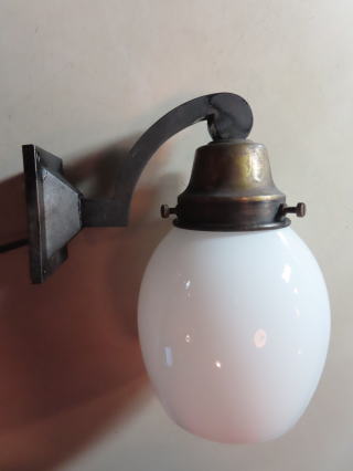 ●20021502 全体の高さ(ガラスの底から器具頂上まで) 23cm 壁からの出っ張り:19.5cm 重さ:0.7kg 材質:真鍮・乳白ガラス 在庫:2台 電球:一般球100Wまでお使い頂けます (エコ)LED電球もお使い頂けます 壁からの出っ張りが少ないので屋根の軒の出っぱりが小さなお玄関や お手洗いなどの狭い空間 階段、廊下などにお使い頂けます *お玄関でお使いの場合は屋根の軒(のき)が20cmもあれば お外でもお使い頂けます 価格;¥30000(税・送料別途) お問い合わせ 電話:(075)-762-0087 小さいので洗面所にも可愛いです ![]() 軍手との大きさ比較です |