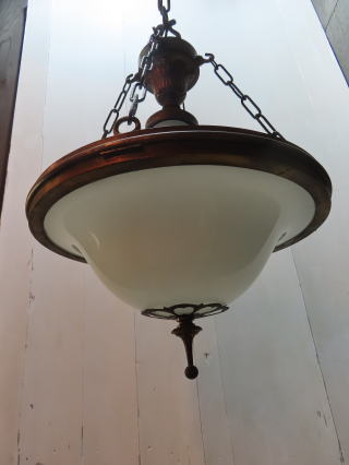 ●07082703 高さ:ガラス27.4cm 横幅:20.2cm 重さ:2kg コード長さ:260cm 材質:乳白ガラス・真鍮 クサリ吊り 在庫:1台 電球:一般球100Wまでお使い頂けます (エコ)LED電球もお使い頂けます 価格:¥100000(税・送料別途) お問い合せメール ![]() ![]() ![]() |