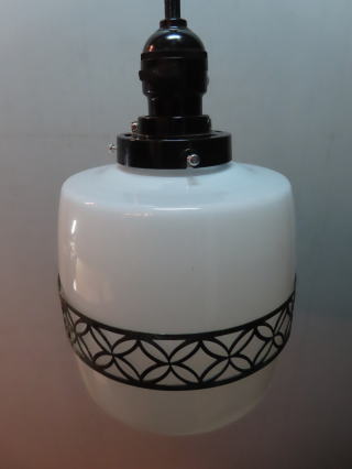 ●06101201 高さ:ガラス20cm 横幅:27cm 重さ:1.2kg コード長さ:146cm 材質:乳白ガラス(つや消し)・真鍮飾り・房かざり 在庫:1台 電球:一般球100Wまでお使い頂けます (エコ)LED電球もお使い頂けます 価格:¥100000(税・送料別途) 大正・昭和初期製造品 お問い合せメール ![]() ![]() ![]() |
