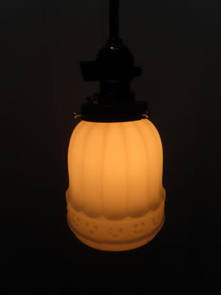 ●07082102 高さ:ガラス16.2cm 横幅:14cm 重さ:1kg コード長さ:59cm 材質:スリガラス 在庫:1台 大正〜昭和初期製造品 価格:¥25000(税・送料別途) ![]() ![]() |