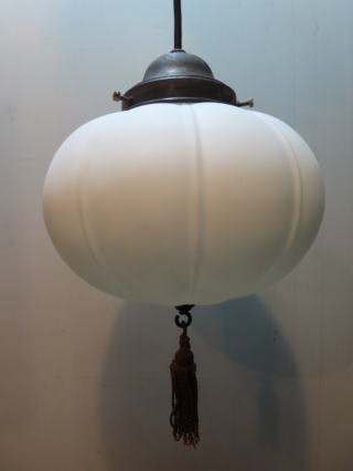 ●07073101 高さ:ガラス17.3cm 横幅:24.5cm 重さ:1.2kg コード長さ:70.5cm 材質:乳白ガラス(つやピカ)・房飾り コード吊り 在庫:1台 時代:大正・昭和初期製造品 価格:¥48000(税・送料別途) 電球:一般球100Wまでお使い頂けます (エコ)LED電球もお使い頂けます ![]() ![]() ![]() |