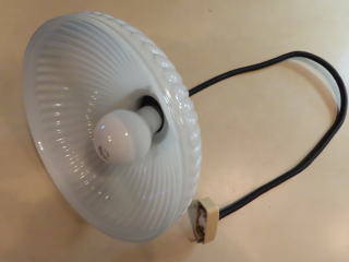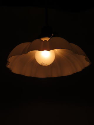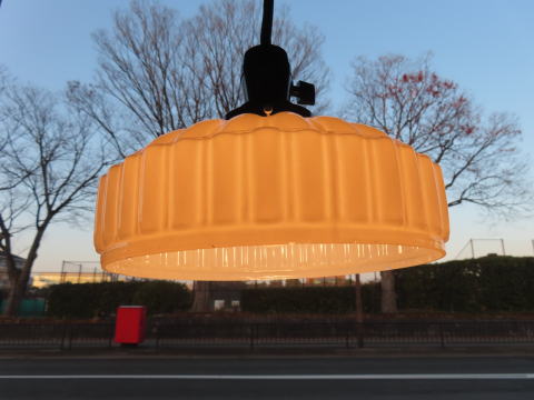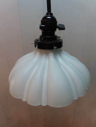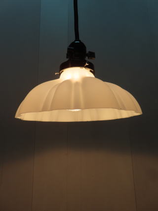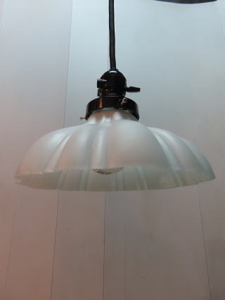 ひらひら笠 ●07092601 高さ:ガラス9.8cm 横幅:21.5cm 重さ:1kg コード長さ:53cm 材質:乳白ガラス(つや消し) 在庫:1台 電球:一般球100Wまでお使い頂けます (エコ)LED電球もお使い頂けます 大正・昭和初期製造品 価格:¥26000(税・送料別途) お問い合せメール ![]() ![]() ![]() |