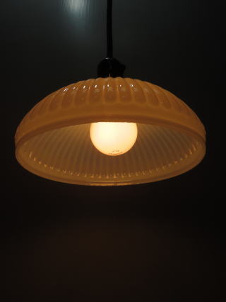 ●04052401 高さ:ガラス9.1cm 横幅:21cm 重さ:1kg コード長さ:42.5cm 材質:乳白ガラス(表面はつや消し) 在庫:1台 電球:一般球100Wまでお使い頂けます (エコ)LED電球もお使い頂けます 価格:¥24000(税・送料別途) お問い合せメール ![]() ![]() ![]() |