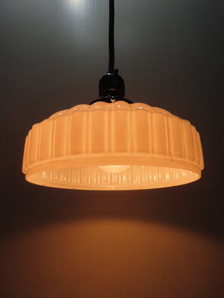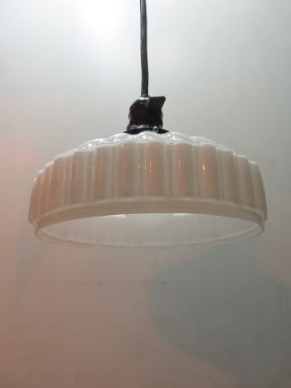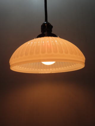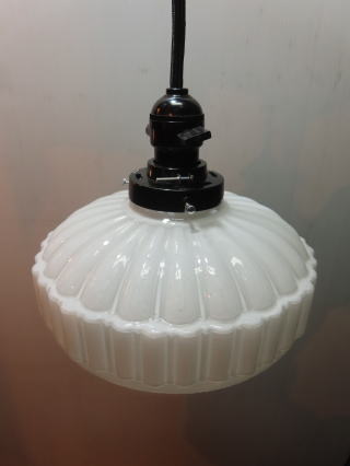 ●07032204 高さ:ガラス10.3cm 横幅:21.8cm 重さ:1kg コード長さ:51.5cm 材質:乳白ガラス(つやピカ) 在庫:1台 電球:一般球100Wまでお使い頂けます (エコ)LED電球もお使い頂けます 大正・昭和初期製造品 価格:¥33000(税・送料別途) お問い合せメール ![]() ![]() ![]() |