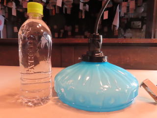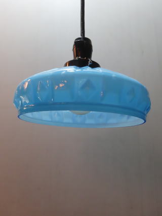 特別に「希少」な照明器具が出ました ●08012101 高さ:ガラス11.5cm 横幅:20.7cm 重さ:1kg コード長さ:71cm 材質:青色ガラス(つやピカ)・房かざり 在庫:1台 電球:一般球100Wまでお使い頂けます (エコ)LED電球もお使い頂けます 大正・昭和初期製造品 価格:¥60000(税・送料別途) お問い合せメール ![]() ![]() ![]() |