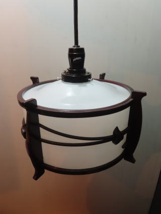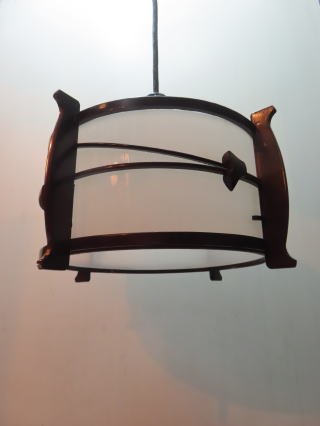 木枠の笠の表面が黒や赤いのものは全て漆(うるし)ぬりです 水洗いができて熱にも強い日本のウルシは照明器具にもごくごく普通に使われていました 表面にピカッとつやのある光沢が魅力です *数十年間使用されてきた風化により ところどころウルシが剥(は)げている器具もございます あらかじめご承知おきくださいませ |