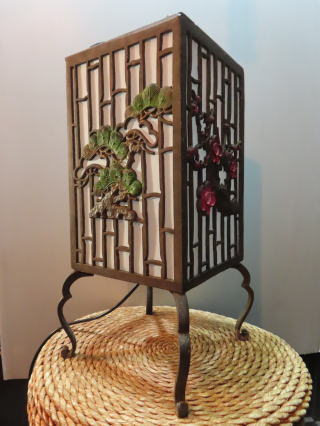 松梅あんどん ●08012601 高さ:58cm よこはば:26.6cm 重さ:3.5kg 材質:ダイカスト・ワーロン紙 コードの長さ:411cm (家庭用の差し込みで簡単にお使いいただけます) 在庫:1台 電球:E-26サイズE-17サイズ共用 一般球40W (エコ)LED電球もお使い頂けます 価格:¥56000(税・送料別途) お問い合せメール ![]() ![]() ![]() |