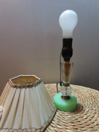 ●08020801 高さ:36.4cm よこはば:19cm 座:9.2cm 重さ:1.1kg コードの長さ:275cm 材質:ガラス・鉄・布(笠) 電球:一般球100wまでお使い頂けます (エコ)LED電球がお使い頂けます 在庫:1台 価格:¥27000(税・送料別途) お問い合せメール ![]() ![]() |