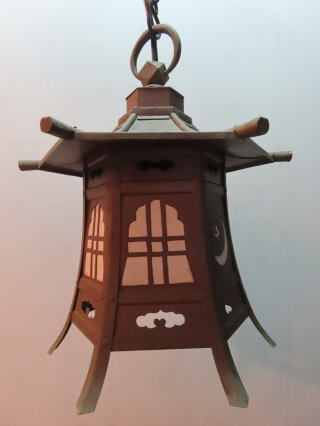 六角・大型とうろう ●05021020 高さ:全体60.5cm よこはば:56.2cm 重さ:14kg(ふたを除き一体型です) コードの長さ:426cm 材質:鉄鋳物・ワーロン張り 防水コード 在庫:1台 電球:一般球E-17サイズ 40Wまでお使い頂けます (エコ)LED電球もお使い頂けます 価格:¥95000(税・送料別途) ![]() 室外に置いて 雨の中でも使えます ![]() |