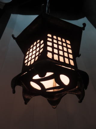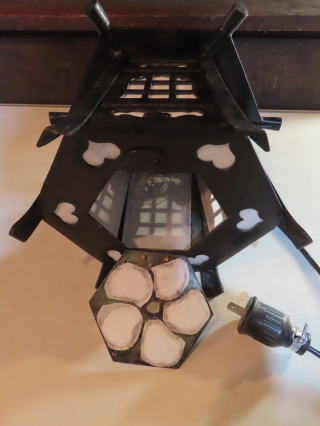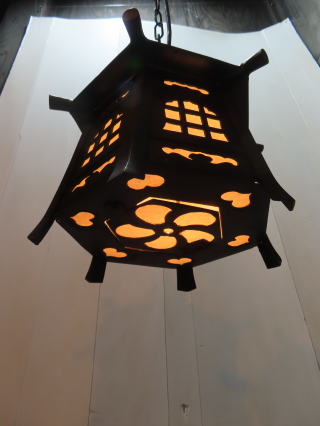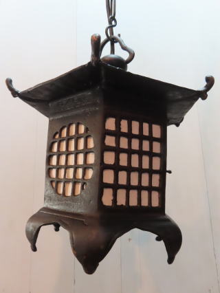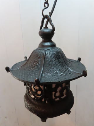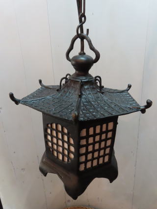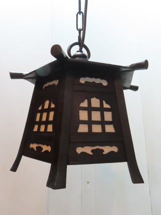 |  (動画はこちらです) https://youtu.be/qVvc2_p3Aus   電球交換は上に乗っている飾り部分を開けるだけですので簡単です | 六角・大型とうろう ●05021020 高さ:全体60.5cm よこはば:56.2cm 重さ:14kg(ふたを除き一体型です) コードの長さ:426cm 材質:鉄鋳物・ワーロン張り 防水コード 在庫:1台 電球:一般球E-17サイズ 40Wまでお使い頂けます (エコ)LED電球もお使い頂けます 価格:¥95000(税・送料別途)  室外に置いて 雨の中でも使えます  |
