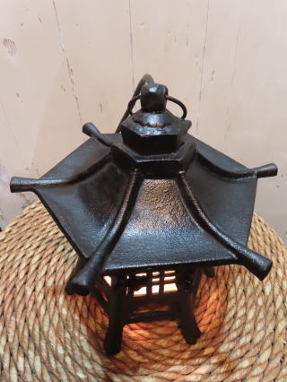 六角・大型とうろう ●05021020 高さ:全体60.5cm よこはば:56.2cm 重さ:14kg(ふたを除き一体型です) コードの長さ:426cm 材質:鉄鋳物・ワーロン張り 防水コード 在庫:1台 電球:一般球E-17サイズ 40Wまでお使い頂けます (エコ)LED電球もお使い頂けます 価格:¥95000(税・送料別途) ![]() 室外に置いて 雨の中でも使えます ![]() |