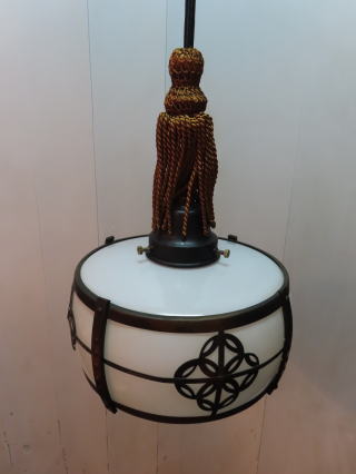 火焔文様 ●06121009 高さ:ガラス18cm 横幅:26.5cm 重さ:1.2kg コード長さ:66cm 材質:乳白ガラス・真鍮飾り・房かざり 在庫:1台 電球:一般球100Wまでお使い頂けます (エコ)LED電球もお使い頂けます 価格:¥78000(税・送料別途) お問い合せメール ![]() ![]() ![]() |