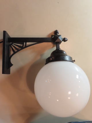 日章の透かしブラケット ●08012201 全体の高さ(ガラスの底から器具頂上まで)34cm 壁からの出っ張り:32cm 重さ:1.9kg 取り付け部159mm*62:mm 材質:アームは真鍮・乳白ガラス ガラスの直径は20cm 電球:100wまで可能 (エコ)LED電球もお使い頂けます 非防水です・・・じかに雨のかかる所では使えません。 軒(のき)の下でお使い下さい。 価格;¥56000(税・送料別途) ![]() ![]() |