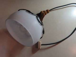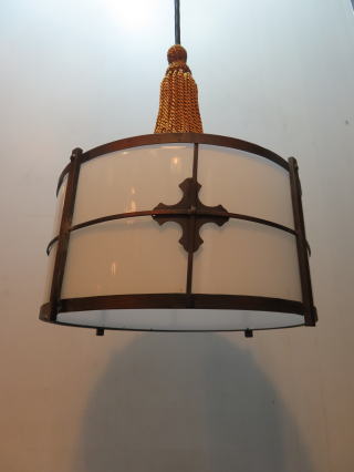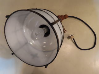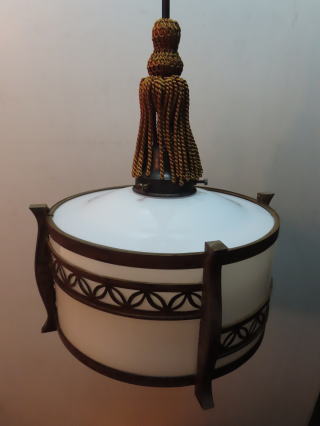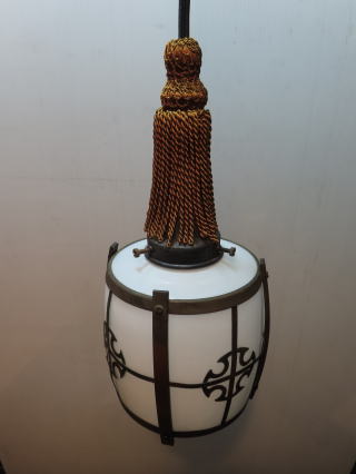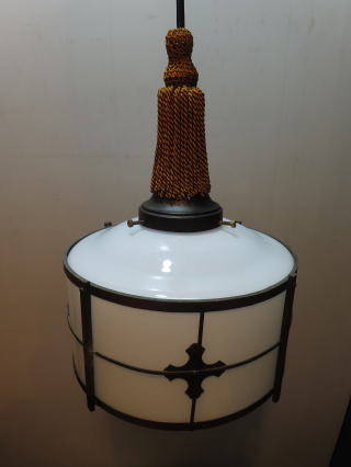 ●06101201 高さ:ガラス20cm 横幅:27cm 重さ:1.2kg コード長さ:146cm 材質:乳白ガラス(つや消し)・真鍮飾り・房かざり 在庫:1台 電球:一般球100Wまでお使い頂けます (エコ)LED電球もお使い頂けます 価格:¥100000(税・送料別途) 大正・昭和初期製造品 お問い合せメール ![]() ![]() ![]() |