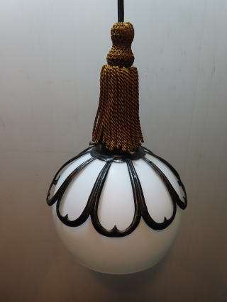 ●08012302 高さ:ガラス18cm 横幅:25.8cm 重さ:1.2kg コード長さ:107cm 材質:乳白ガラス・真鍮飾り・房かざり 在庫:1台 電球:一般球100Wまでお使い頂けます (エコ)LED電球もお使い頂けます 価格:¥68000(税・送料別途) お問い合せメール ![]() ![]() ![]() |