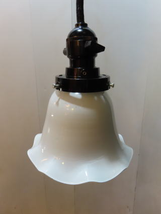 ●07082102 高さ:ガラス16.2cm 横幅:14cm 重さ:1kg コード長さ:59cm 材質:スリガラス 在庫:1台 大正〜昭和初期製造品 価格:¥25000(税・送料別途) ![]() ![]() |