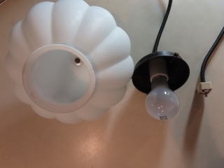 ●02122301 高さ:ガラス18.9cm 横幅:23.4cm 重さ:1.3kg コード長さ:68.2cm 材質:乳白ガラス(表面はつや消し)・房飾り 底面に若干の汚れがあります 在庫:1台 電球:一般球100Wまでお使い頂けます (エコ)LED電球もお使い頂けます 売れました 素敵な照明をお選び頂きまして ありがとうございます。 ![]() ![]() ![]() (動画はこちらです) https://youtu.be/284ChUxVKbo |
