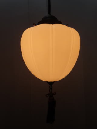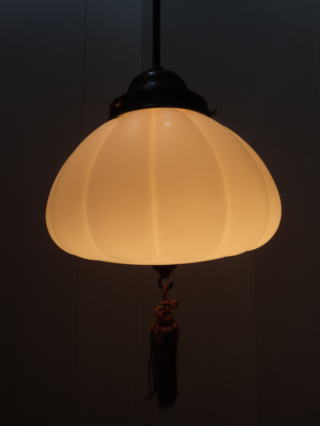 小さなぼんぼり ●07100705 高さ:ガラス18.6cm 横幅:20cm 重さ:1.1kg コード長さ:83cm 材質:乳白ガラス(つや消し)・房飾り コード吊り 在庫:1台 時代:大正・昭和初期製造品 価格:¥48000(税・送料別途) 電球:一般球100Wまでお使い頂けます (エコ)LED電球もお使い頂けます ![]() ![]() ![]() |