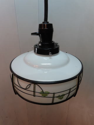 ●06090201 高さ:ガラス10.4cm 横幅:20.5cm 重さ:1kg コード長さ:60cm 材質:乳白ガラス・樹脂飾り 在庫:1台 電球:一般球E-26サイズ100Wまでお使い頂けます (エコ)LED電球もお使い頂けます 価格:¥23000(税・送料別途) お問い合せメール ![]() ガラスのまわりにセルロイドの飾りが貼ってあります ![]() ![]() |