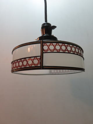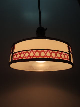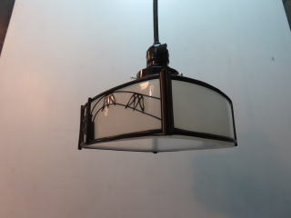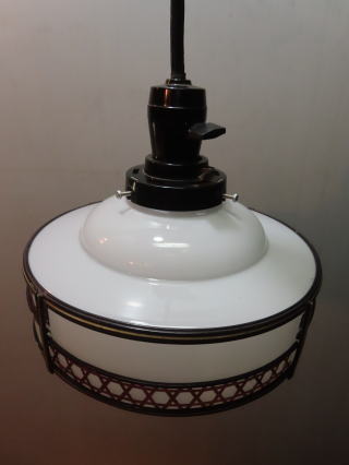 ●08030601 高さ:ガラス10.5cm 横幅:20.2cm 重さ:1kg コード長さ:52.5cm 材質:乳白ガラス・樹脂飾り 在庫:1台 電球:一般球E-26サイズ100Wまでお使い頂けます (エコ)LED電球もお使い頂けます 価格:¥24000(税・送料別途) お問い合せメール ![]() ![]() |