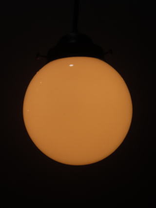 小さなお月さん ●08022701 高さ:ガラス16.4cm 横幅:16.3cm 重さ:1kg コード長さ:48cm 材質:乳白ガラス コード吊り 在庫:1台 大正・昭和初期製造品 電球:一般球100Wまでお使い頂けます (エコ)LED電球もお使い頂けます 価格:¥15000(税・送料別途) お問い合せメール ![]() ![]() |
