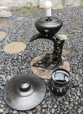 桐透かし灯ろう ●28081504 高さ:60cm よこはば:54cm 重さ:8kg コードの長さ:463cm 材質:鉄鋳物・ワーロン張り 防水コード 在庫:1台 電球:一般球E-17サイズ 40Wまでお使い頂けます (エコ)LED電球もお使い頂けます 価格:¥90000(税・送料別途) 室外に置いて 雨の中でも使えます お問い合せメール ![]() ![]() 各部分は自重で重なるようになっています |