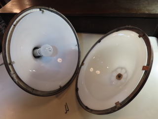 ![]() ●13092805(一文字笠) ガラス自体の大きさについて 高さ:4.5cm 直径:23.5cm 重さ:0.5kg 材質:乳白ガラス(ガラスの色自体は白です)・・・ 電球を点すことによりそこに陰影ができ黄色味を帯びた美しい色に輝きます 電球:一般球E-26サイズ 100wまで使用可能です (エコ)LED電球もお使い頂けます 付属コード長さ:30~50cm(延長料金1m当り¥800:税別) セット価格:\7700(税込み・送料別途) ¥7000(税・送料別途) コード付きです ガラス単品でも販売いたします:¥5000(税・送料別途) 在庫:だいたいいつも平均20台前後は確保しております。 ただし1つ1ついろんな所(古い民家)から集めているもので、よく売れますので 在庫切れの時もあります。 (状態) 通販でアンティーク商品を購入する際に特に心配で気になるのが商品の状態です。 安心してお求めいただける「最善の状態」の商品を選んでお届けします。 先人のガラス職人が炎の吹き出す熱い炉の前で 一生懸命汗まみれになって作った何とも言えない「人のあたたかみ」を感じます。 光った時の風合いは琥珀がかったおだやかな飴(あめ)色。 これから貴方の家で永代に使っていただきたい 自身たっぷり!店主おすすめの電気の笠です。 ![]() (参考動画) https://youtu.be/Tz1eefuLZ2g https://youtu.be/QRXWLXPu6Rk |