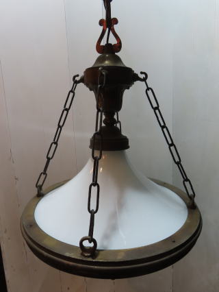 ●07110101 高さ:器具58cm 横幅:39cm 重さ:kg コード長さ:cm 材質:乳白ガラス・真鍮 クサリ吊り 在庫:1台 電球:一般球100Wまでお使い頂けます (エコ)LED電球もお使い頂けます 価格:¥180000(税・送料別途) お問い合せメール ![]() ![]() 1点の蝶番にピン2本で固定されています ![]() ![]() |