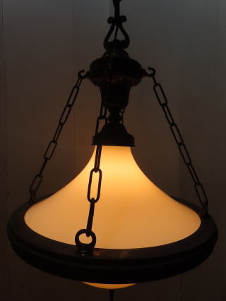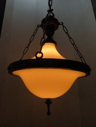 お茶屋 ●07112401 高さ:ガラス20.4cm 横幅:19.4cm 重さ:1kg コード長さ:73cm 材質:乳白ガラス 大正・昭和初期製造品 在庫:1台 電球:一般球100Wまでお使い頂けます (エコ)LED電球もお使い頂けます 価格:¥22000(税・送料別途) お問い合せメール ![]() ![]() |