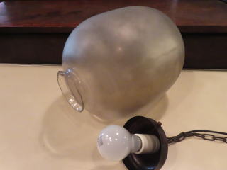 月の家 ●07112501 高さ:ガラス20.7cm 横幅:19.6cm 重さ:1kg コード長さ:74.5cm 材質:乳白ガラス 大正・昭和初期製造品 在庫:1台 電球:一般球100Wまでお使い頂けます (エコ)LED電球もお使い頂けます 価格:¥22000(税・送料別途) お問い合せメール ![]() ![]() ![]() |