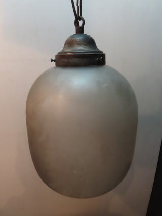 ●08040501 高さ:ガラス32.3cm 横幅:25.7cm 重さ:2kg コード長さ:270cm 材質:スリガラス 在庫:1台 電球:一般球100Wまでお使い頂けます 大正・昭和初期製造品 (エコ)LED電球もお使い頂けます 価格:¥36000(税・送料別途) お問い合せメール ![]() ![]() ![]() |