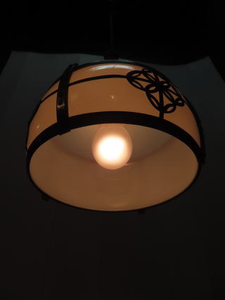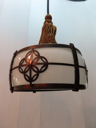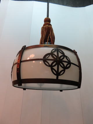火焔文様 ●06121009 高さ:ガラス18cm 横幅:26.5cm 重さ:1.2kg コード長さ:66cm 材質:乳白ガラス・真鍮飾り・房かざり 在庫:1台 電球:一般球100Wまでお使い頂けます (エコ)LED電球もお使い頂けます 価格:¥78000(税・送料別途) お問い合せメール ![]() ![]() ![]() |