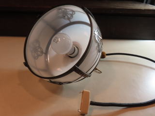 ●07061501 高さガラス13.4cm よこはば:22.2cm 重さ:1.2kg 材質:乳白ガラス(つやピカ) 真鍮・房飾り コードの長さ:84cm 在庫:1台 電球:E-26サイズ一般球100Wまでお使い頂けます (エコ)LED電球もお使い頂けます 大正・昭和初期製造品 価格:¥46000(税・送料別途) お問い合せメール ![]() ![]() |